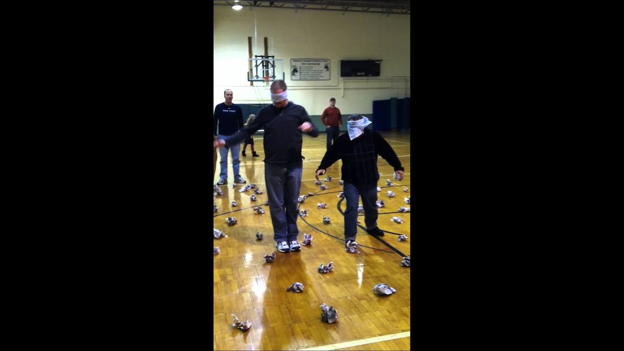 This Was A New Game We Tried This Year A Land Mine Field Is Set Up In An Open Space We Ta Building Games For Kids Youth Games Fun Team Building